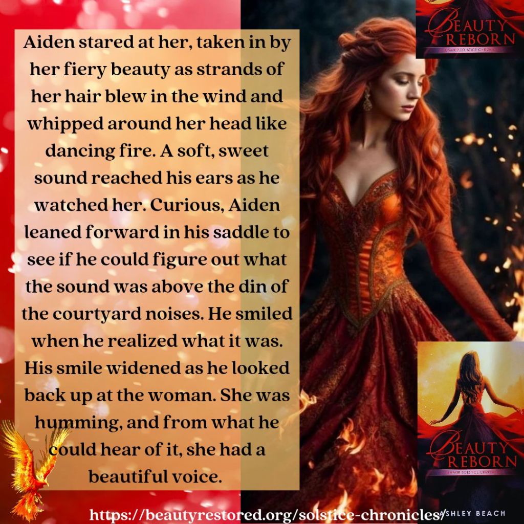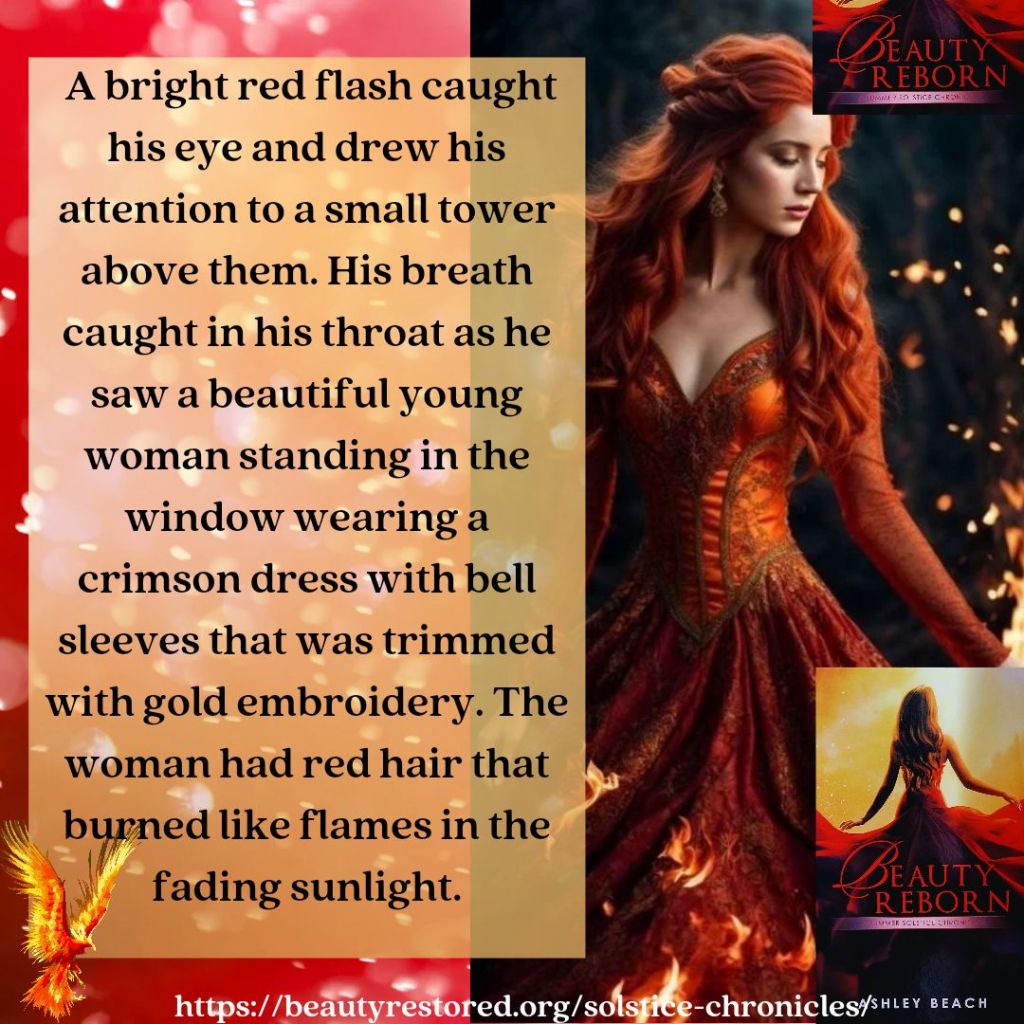When you read Beauty Reborn, you will see a lot of similar elements in Amber’s story. Her fiery red hair that catches Aiden’s attention when he first sees her in the window of her tower in the Summer palace that is built like a fortress ends up growing to unusual lengths after she comes in contact with a mystical Phoenix Gem. There are also other similarities incorporated into this Summer Solstice tale with blinded eyes being healed by a magical tear.
