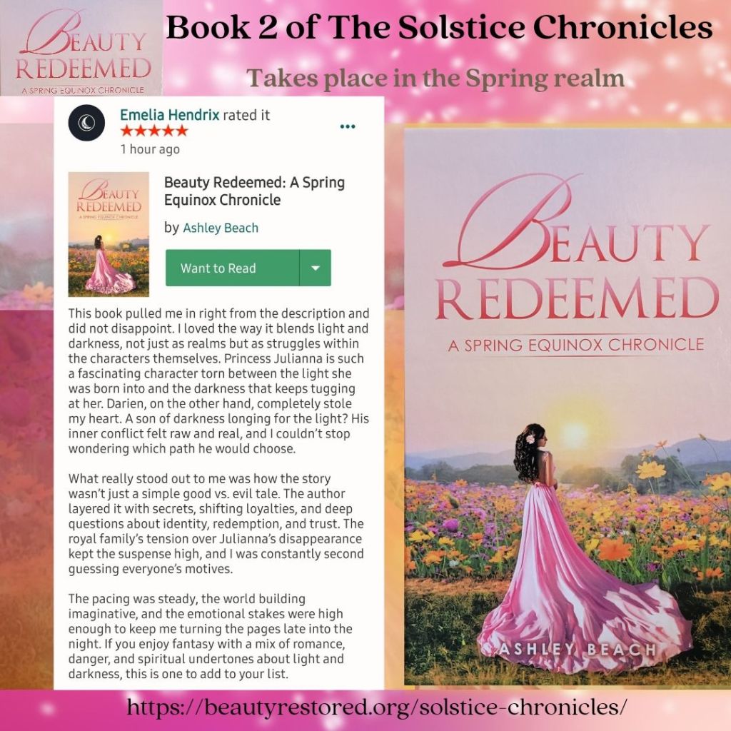 A faith-based fairytale series that follows the four seasons. The characters of the Winter, Spring, Summer, and Fall realms all face battles between good and evil, light and dark, and their own battles and struggles within. Follow them on these fairytale based adventures as their own beauty and the beauty of the realms is Restored, Redeemed, Reborn, and Revealed. Pictures of Christ and the Bible in a fairytale setting